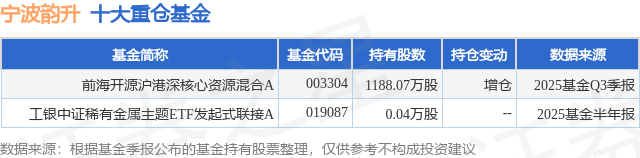 根据2025基金Q3季报公募基金重仓股数据,重仓该股的公募基金共1家,其中持有数量最多的公募基金为前海开源基金的前海开源沪港深核心资源混合A。前海开源沪港深核心资源混合A目前规模为6.86亿元,最新净值4.559(12月15日),较上一交易日下跌0.35%,近一年上涨53.97%。该公募基金现任基金经理为吴国清。吴国清在任的基金产品包括:前海开源一带一路混合A,管理时间为2019年7月19日至今,期间收益率为-26.58%;前海开源沪港深农业混合A,管理时间为2020年7月20日至今,期间收益率为-32.25%;前海开源金银珠宝混合A,管理时间为2021年6月1日至今,期间收益率为94.47%。