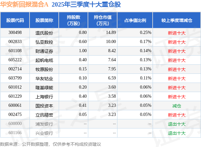 根据2025基金Q3季报公募基金重仓股数据,重仓该股的公募基金共1家,其中持有数量最多的公募基金为华安基金的华安新回报混合A。华安新回报混合A目前规模为0.35亿元,最新净值1.5134(12月15日),较上一交易日下跌0.05%,近一年上涨0.56%。该公募基金现任基金经理为朱才敏。朱才敏在任的基金产品包括:华安双债添利债券A,管理时间为2014年11月20日至今,期间收益率为62.94%;华安智联混合(LOF)A,管理时间为2021年3月8日至今,期间收益率为47.58%;华安添和一年债券A,管理时间为2021年7月13日至今,期间收益率为5.89%。