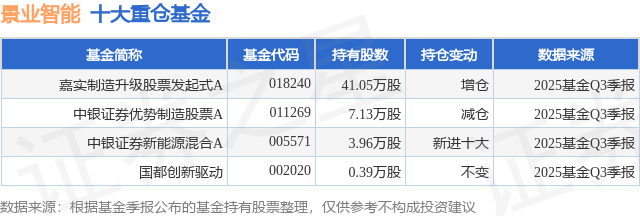 根据2025基金Q3季报公募基金重仓股数据,重仓该股的公募基金共4家,其中持有数量最多的公募基金为嘉实基金的嘉实制造升级股票发起式A。嘉实制造升级股票发起式A目前规模为0.61亿元,最新净值1.4837(12月15日),较上一交易日下跌1.9%,近一年上涨37.58%。该公募基金现任基金经理为孟夏。孟夏在任的基金产品包括:嘉实优势成长混合A,管理时间为2020年7月22日至今,期间收益率为48.06%;嘉实领先成长混合,管理时间为2022年11月2日至今,期间收益率为12.75%;嘉实成长驱动混合A,管理时间为2023年9月22日至今,期间收益率为69.58%。