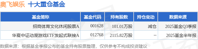 根据2025基金Q3季报公募基金重仓股数据,重仓该股的公募基金共1家,其中持有数量最多的公募基金为招商基金的招商体育文化休闲股票A。招商体育文化休闲股票A目前规模为2.16亿元,最新净值1.838(12月15日),较上一交易日下跌1.34%,近一年上涨6.98%。该公募基金现任基金经理为文仲阳。文仲阳在任的基金产品包括:招商丰盈积极配置混合A,管理时间为2024年3月12日至今,期间收益率为19.1%。