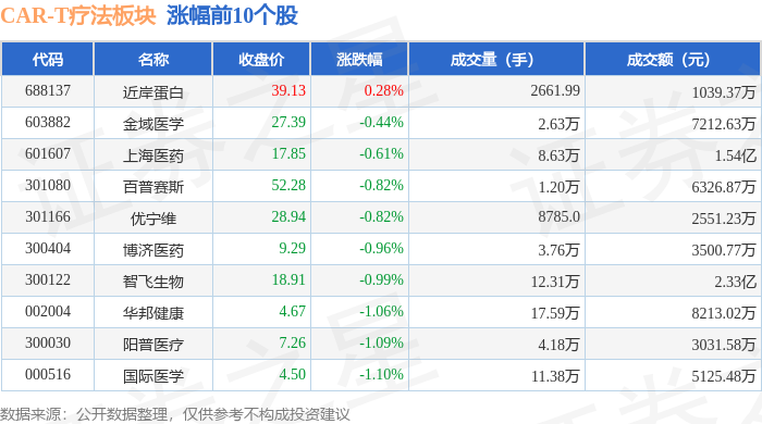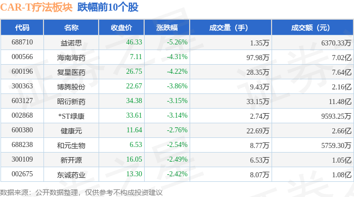 证券之星消息,12月16日CAR-T疗法板块较上一交易日下跌2.13%,益诺思领跌。当日上证指数报收于3824.81,下跌1.11%。深证成指报收于12914.67,下跌1.51%。CAR-T疗法板块个股涨跌见下表: