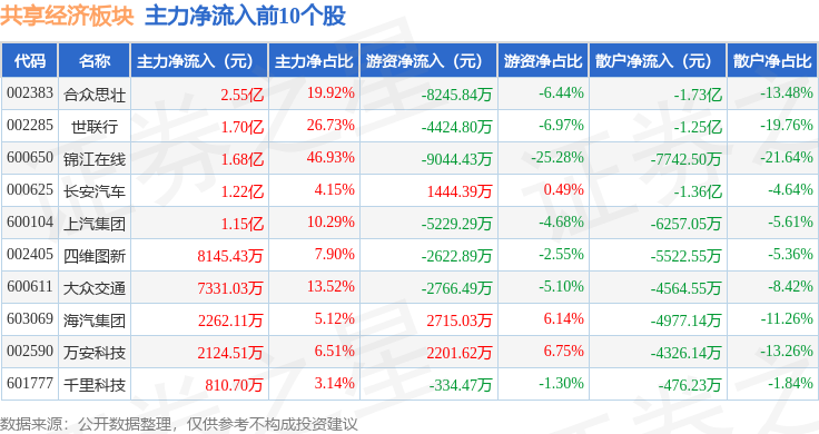 从资金流向上来看,当日共享经济板块主力资金净流入1386.59万元,游资资金净流出9359.18万元,散户资金净流入7972.59万元。共享经济板块个股资金流向见下表:
