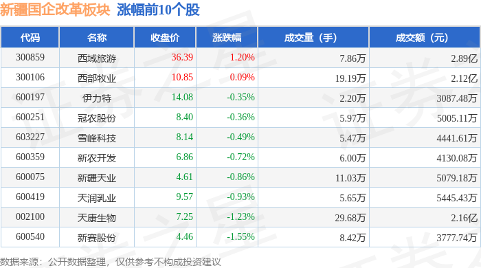 证券之星消息,12月16日新疆国企改革板块较上一交易日下跌2.73%,西部黄金领跌。当日上证指数报收于3824.81,下跌1.11%。深证成指报收于12914.67,下跌1.51%。新疆国企改革板块个股涨跌见下表:
