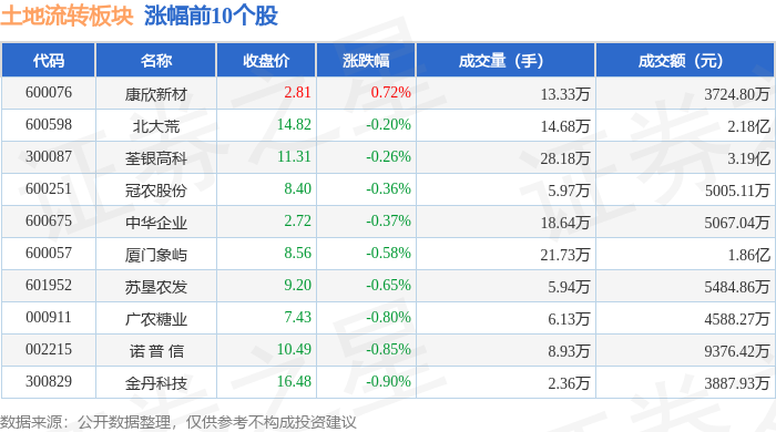 证券之星消息,12月16日土地流转板块较上一交易日下跌1.65%,神农种业领跌。当日上证指数报收于3824.81,下跌1.11%。深证成指报收于12914.67,下跌1.51%。土地流转板块个股涨跌见下表: