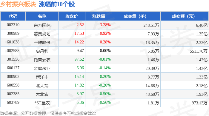 从资金流向上来看,当日乡村振兴板块主力资金净流出9.14亿元,游资资金净流出4468.18万元,散户资金净流入9.59亿元。乡村振兴板块个股资金流向见下表:
