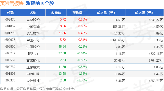 从资金流向上来看,当日页岩气板块主力资金净流出7.45亿元,游资资金净流入2191.34万元,散户资金净流入7.23亿元。页岩气板块个股资金流向见下表: