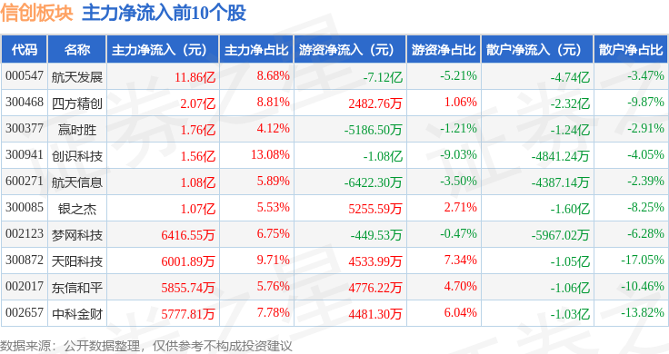 从资金流向上来看,当日信创板块主力资金净流出32.72亿元,游资资金净流入5.92亿元,散户资金净流入26.81亿元。信创板块个股资金流向见下表:
