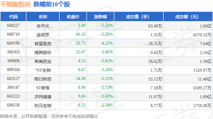 证券之星消息,12月16日干细胞板块较上一交易日下跌2.44%,赤天化领跌。当日上证指数报收于3824.81,下跌1.11%。深证成指报收于12914.67,下跌1.51%。干细胞板块个股涨跌见下表: