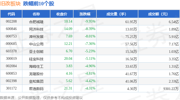 证券之星消息,12月16日旧改板块较上一交易日下跌0.97%,合肥城建领跌。当日上证指数报收于3824.81,下跌1.11%。深证成指报收于12914.67,下跌1.51%。旧改板块个股涨跌见下表: