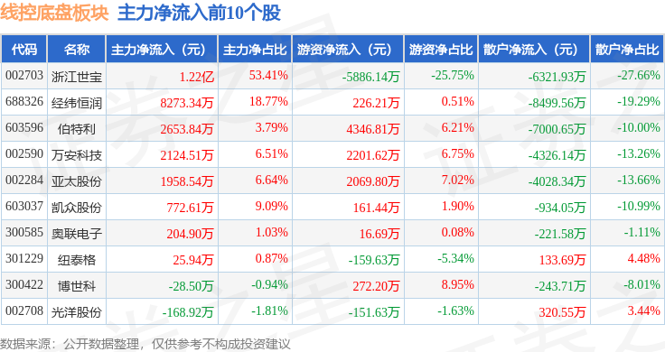 从资金流向上来看,当日线控底盘板块主力资金净流入1.93亿元,游资资金净流入1065.89万元,散户资金净流出2.04亿元。线控底盘板块个股资金流向见下表: