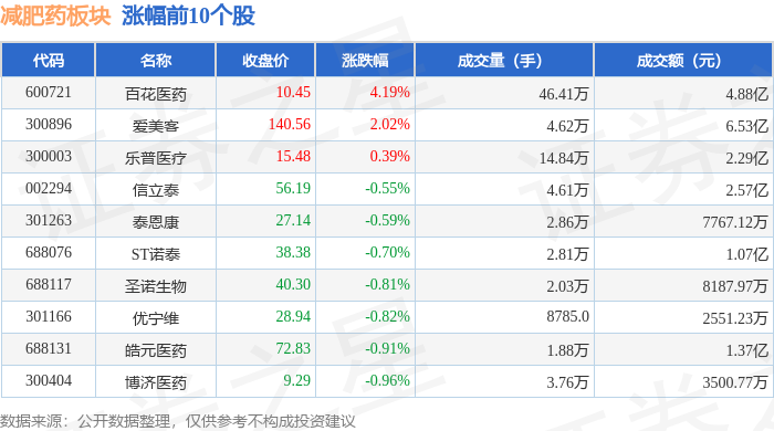 证券之星消息,12月16日减肥药板块较上一交易日下跌2.74%,常山药业领跌。当日上证指数报收于3824.81,下跌1.11%。深证成指报收于12914.67,下跌1.51%。减肥药板块个股涨跌见下表: