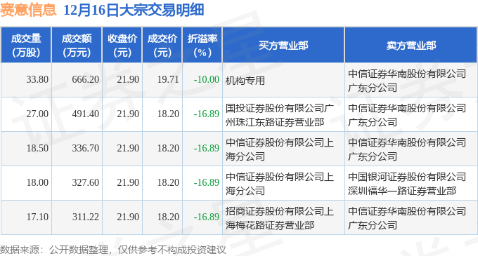 证券之星消息,12月16日赛意信息发生大宗交易,交易数据如下: