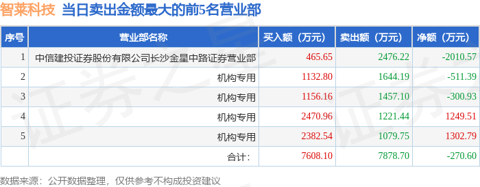 证券小知识:龙虎榜是交易所披露的竞价交易公开信息,现身龙虎榜的个股都是当日最为活跃的个股,是投资者日常重点关注的数据。交易所公布当日买入金额和卖出金额前五名的席位,其中一些席位代表特殊意义,如机构专用席位是指基金专用席位、券商自营专用席位、社保专用席位、券商理财专用席位、保险机构专用席位、保险机构租用席位、QFII专用席位等机构投资者买卖证券的专用通道和席位。深股通专用、沪股通专用为北向资金的交易席位。从龙虎榜数据可以发现和研究机构、游资和散户的资金动向。一些营业部席位经常上榜,市场知名度较高,投资者整理代表散户、游资、量化等不同资金的营业部席位。