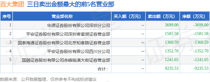 证券之星消息,沪深交易所2025年12月16日公布的交易公开信息显示,百大集团(600865)因非ST、*ST和S证券连续三个交易日内收盘价格涨幅偏离值累计达到20%的证券登上龙虎榜。此次是近5个交易日内第2次上榜。