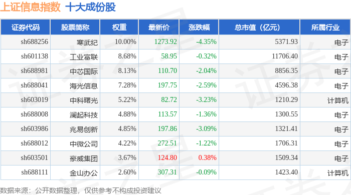 上证信息(000039)指数十大成份股详情如下:
