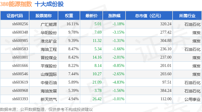 近10日内380能源(000104)指数成份股做了调整,新纳入了3只股票。