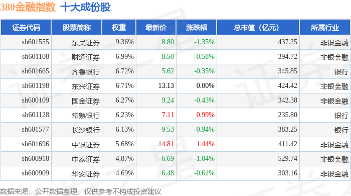 380金融(000110)指数十大成份股详情如下: