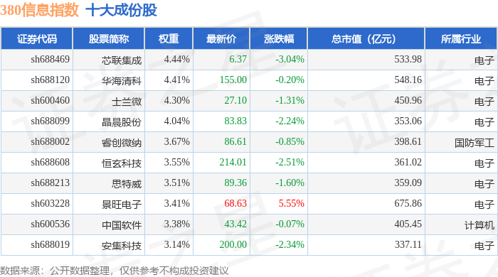 近10日内380信息(000111)指数成份股做了调整,新纳入了9只股票,剔除了6只股票。