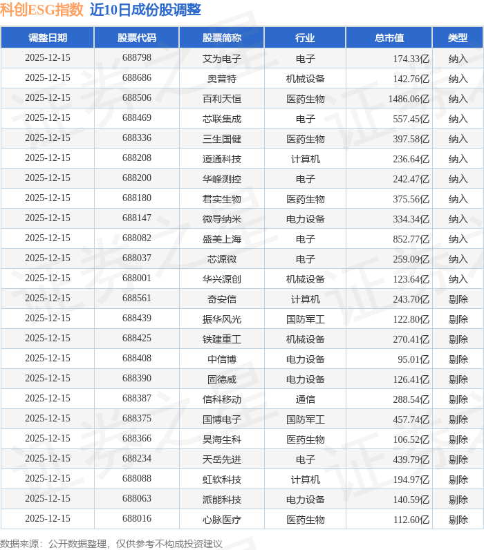 近10日内科创ESG(000691)指数成份股做了调整,新纳入了12只股票,剔除了12只股票。