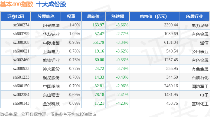 资金流向方面,基本400(000966)指数成份股当日主力资金净流出合计149.06亿元,游资资金净流入合计35.83亿元,散户资金净流入合计113.23亿元。成份股资金流向详情见下表:
