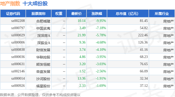 证券之星消息,12月16日,地产指数(399241)报收于1190.46点,跌0.73%,成交92.52亿元,换手率2.92%。当日该指数成份股中,上涨的有6家,世联行以10.1%的涨幅领涨,下跌的有25家,合肥城建以9.95%的跌幅领跌。
