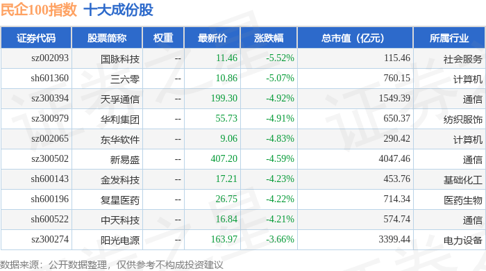 资金流向方面,民企100(399362)指数成份股当日主力资金净流出合计122.61亿元,游资资金净流入合计38.35亿元,散户资金净流入合计84.26亿元。成份股资金流向详情见下表: