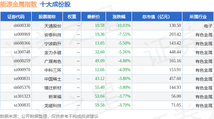 近10日内能源金属(399366)指数成份股做了调整,新纳入了3只股票,剔除了1只股票。