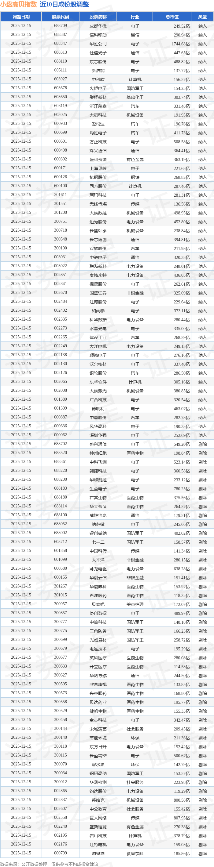 近10日内小盘高贝(399409)指数成份股做了调整,新纳入了47只股票,剔除了47只股票。