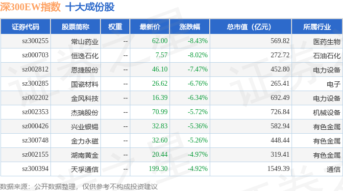 深300EW(399633)指数十大成份股详情如下: