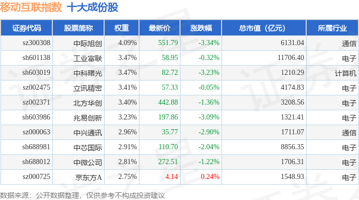 近10日内移动互联(399970)指数成份股做了调整,新纳入了1只股票,剔除了1只股票。