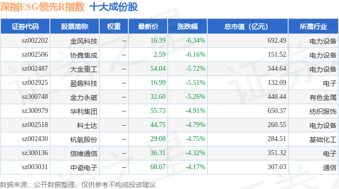 深指ESG领先R(470029)指数十大成份股详情如下:
