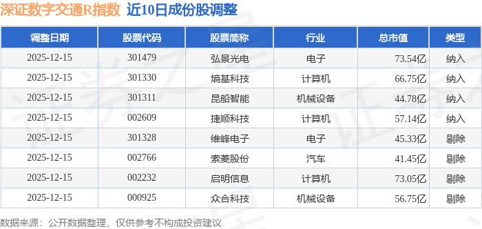 近10日内深证数字交通R(470049)指数成份股做了调整,新纳入了4只股票,剔除了4只股票。