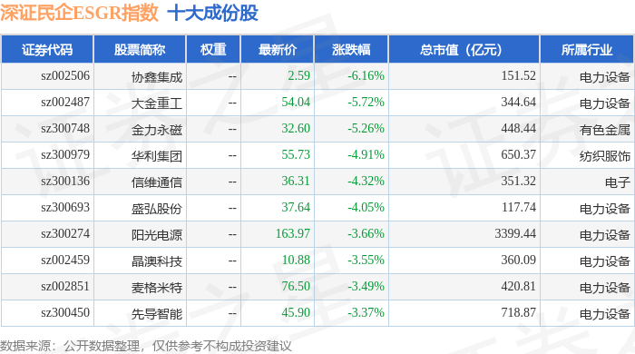 深证民企ESGR(470056)指数十大成份股详情如下: