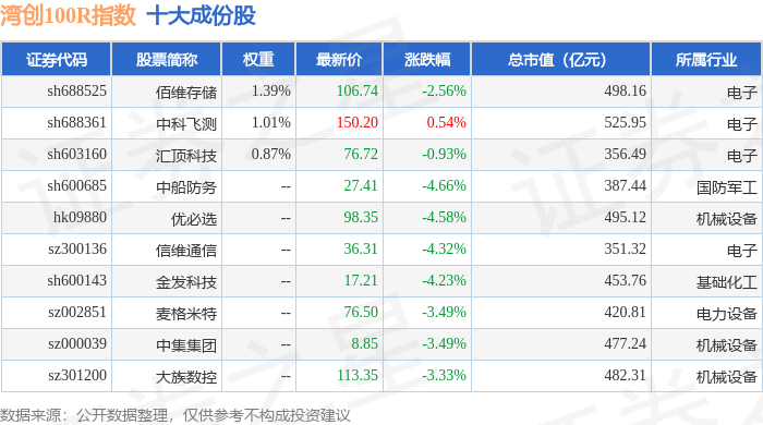 近10日内湾创100R(480001)指数成份股做了调整,剔除了1只股票。