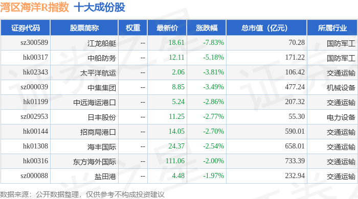 近10日内湾区海洋R(480019)指数成份股做了调整,新纳入了2只股票。