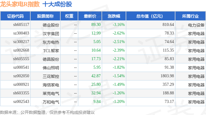 近10日内龙头家电R(480028)指数成份股做了调整,新纳入了3只股票,剔除了3只股票。