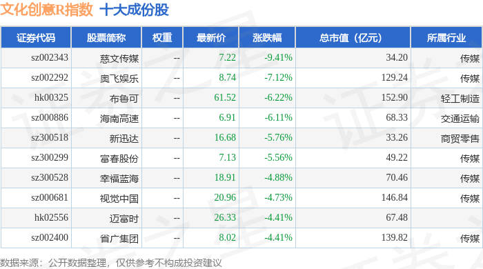 文化创意R(480046)指数十大成份股详情如下: