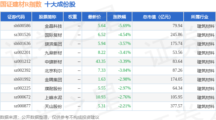 国证建材R(480048)指数十大成份股详情如下: