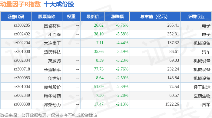 动量因子R(480057)指数十大成份股详情如下: