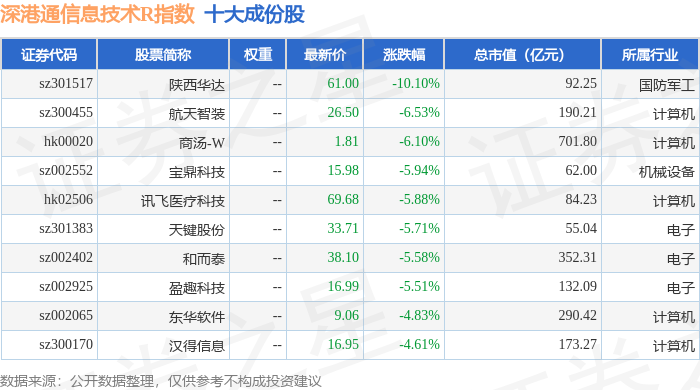 深港通信息技术R(483027)指数十大成份股详情如下: