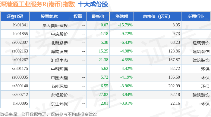深港通工业服务R(港币)(483056)指数十大成份股详情如下: