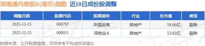 近10日内深港通内房股R(港币)(483084)指数成份股做了调整,剔除了2只股票。
