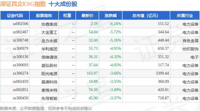 资金流向方面,深证民企ESG(970056)指数成份股当日主力资金净流出合计62.45亿元,游资资金净流入合计7795.49万元,散户资金净流入合计61.67亿元。成份股资金流向详情见下表: