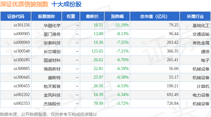 证券之星消息,12月16日,深证优质信披(970065)指数报收于2929.07点,跌1.44%,成交3127.51亿元,换手率1.45%。当日该指数成份股中,上涨的有103家,四方精创以7.22%的涨幅领涨,下跌的有417家,华融化学以11.19%的跌幅领跌。