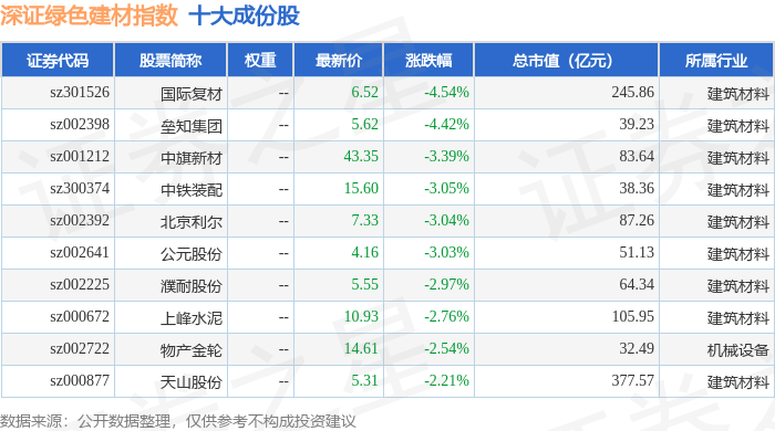 近10日内深证绿色建材(970077)指数成份股做了调整,新纳入了5只股票,剔除了5只股票。