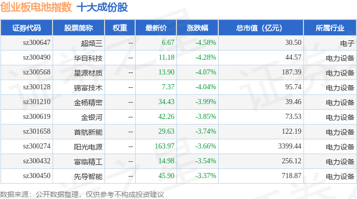 近10日内创业板电池(970081)指数成份股做了调整,新纳入了2只股票。