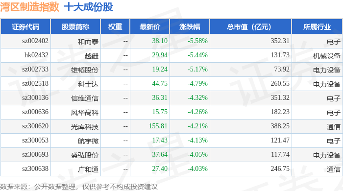 近10日内湾区制造(980009)指数成份股做了调整,新纳入了1只股票,剔除了1只股票。
