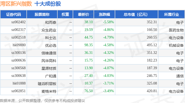 湾区新兴(980007)指数十大成份股详情如下: