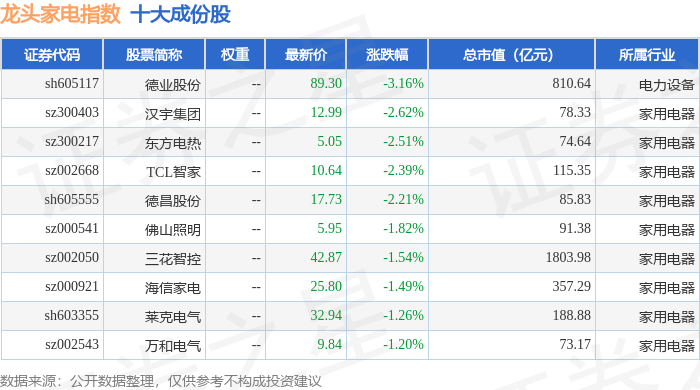近10日内龙头家电(980028)指数成份股做了调整,新纳入了3只股票,剔除了3只股票。