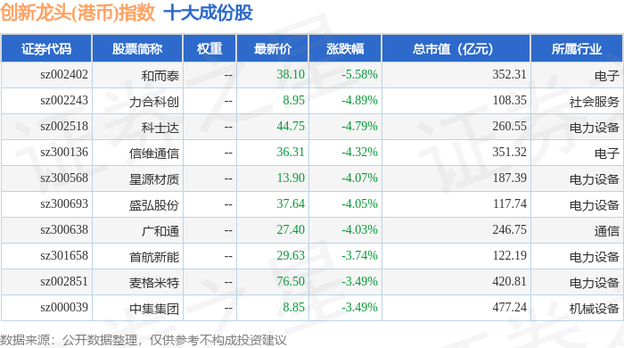 创新龙头(港币)(980037)指数十大成份股详情如下: